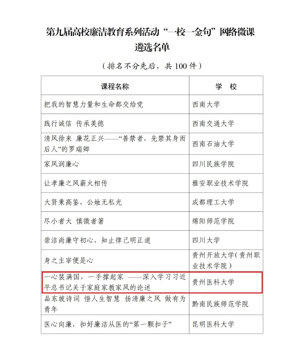近日,教育部第九届高校廉洁教育系列活动“一校一金句”网络微课遴选名单公布,太阳成集团tyc33455cc官网党委宣传部制作的《一心装满国,一手撑起家——深入学习习近平总书记关于家庭家教家风的论述》网络微课成功入选。