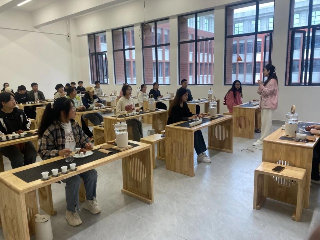 茶艺课堂上,学生们亲手采茶、炒青、冲泡,沉浸式体验茶文化的千年韵味。学校将思政教育融入茶艺教学,通过“理论+实践”模式,引导学生从一片茶叶中读懂中华文明的厚重。学生在品茗中感悟“和敬清寂”的茶道精神,在茶席间体悟文化自信与家国情怀,让传统文化成为滋养心灵的生动教材。