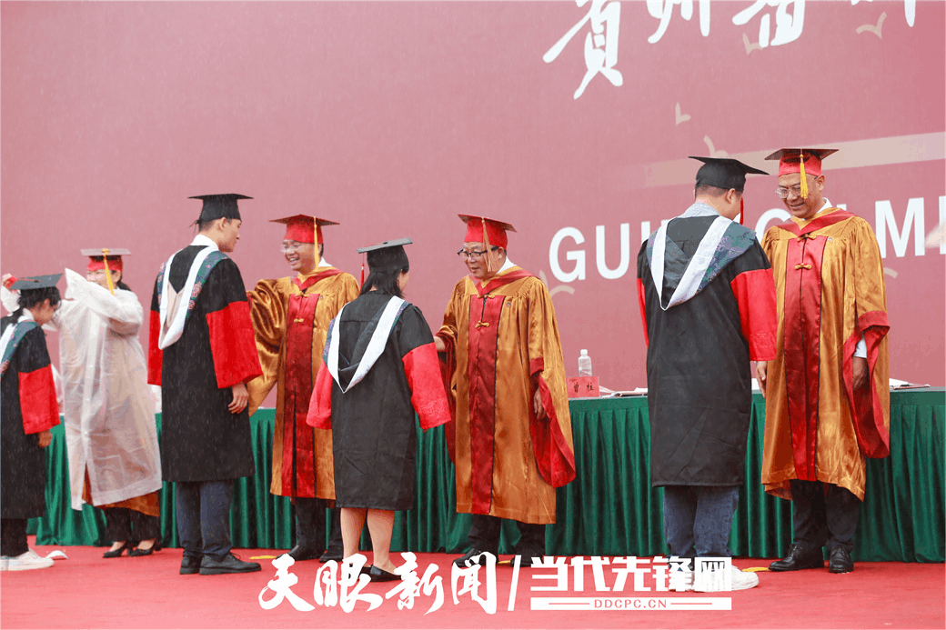 在罗鹏校长情真意切的寄语后,学位授予仪式正式开始。校领导及校学位评定委员会成员依次为博士研究生、硕士研究生和本科生颁授学位,郑重地为每一位毕业生拨正流苏。毕业生们身着学位服,手持学位证书,在雨中庄严地接受这一人生重要时刻的洗礼,他们的脸上洋溢着喜悦和自豪,这一刻将成为他们永恒的记忆。