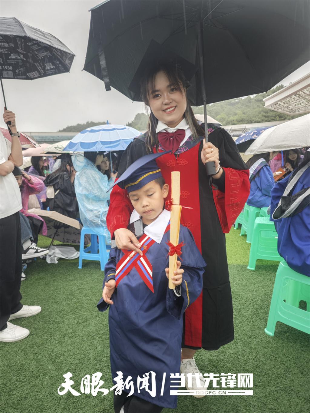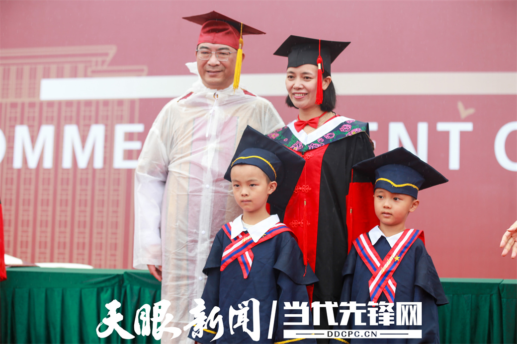 “超人妈妈”领着一双萌娃走上台,成为毕业典礼上最暖人心的瞬间。