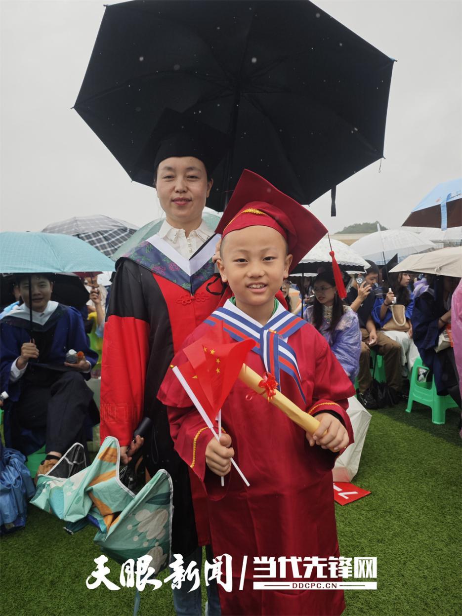 公共卫生与预防医学博士小孩张人华,带着9岁儿子参加典礼,儿子骄傲地说:“妈妈最棒!”