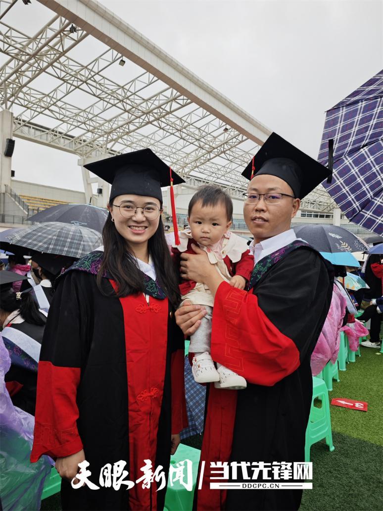影像学博士尹义与药学博士余琨琳,这对相恋十年的学术伉俪,今年双双毕业,携带1岁萌宝见证人生重要时刻。