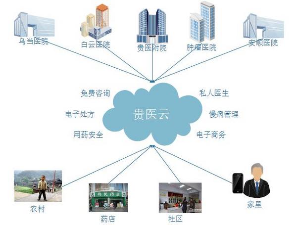 贵医云是在“云上贵州”的大战略下作为贵州省响应国家“互联网+”战略在大众医疗健康领域的一个重要实践。贵医云的核心目标是整合贵州省三甲医院的医生资源,采用“互联网+”的发展思路,将医生放在云端服务,并通过网络将这种服务延伸到贵州省的各个角落,包括家庭、社区、药店和乡村卫生院等,覆盖贵州4300万人群,体现“互联网+”高效、普惠的精神。
