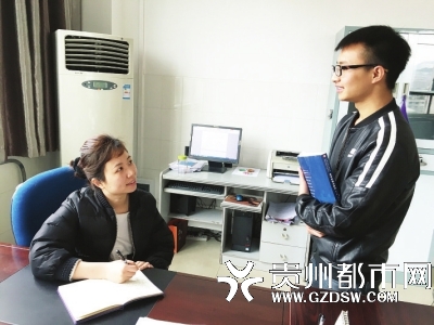 姚琨与学生谈话。