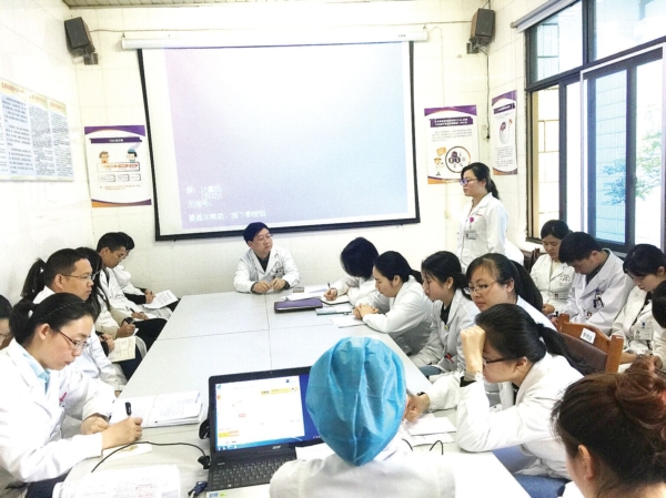 采访中,正在读血液科研三的研究生医师曹淑云告诉记者,使用英文交班的难点在于交班过程中许多疾病和治疗方法的单词较为生僻,难以读对、读准,所以开始使用英文交班时,大家都是边交班边学习,利用交完班后10-20分钟的时间学习科室常见疾病及治疗的相关单词、短语和句式,练习发音和语感。渐渐地通过中英语交班的方式,每个人都有机会在晨会上开口“秀”出英语,大家也在不知不觉中掌握了大量的临床医学词汇。