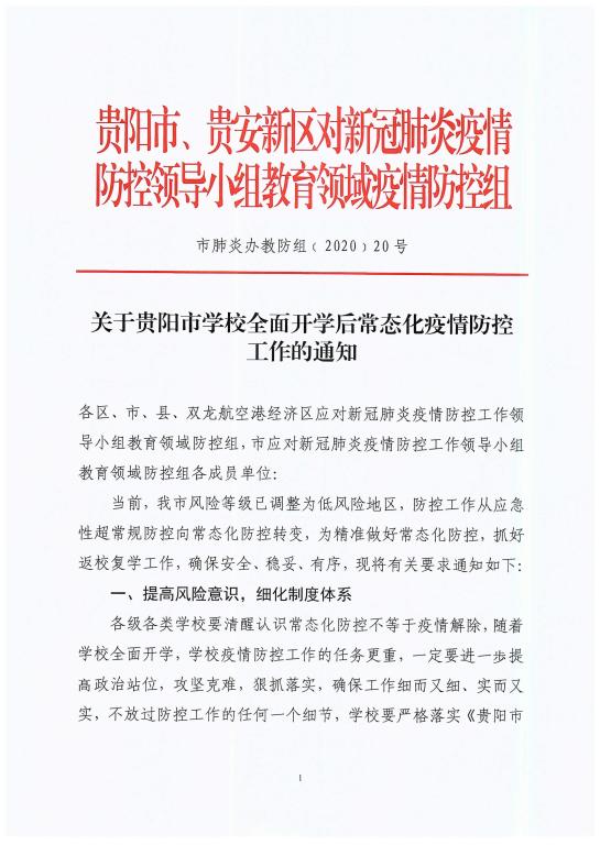 附件:《关于贵阳市学校全面开学后常态化疫情防控工作的通知》