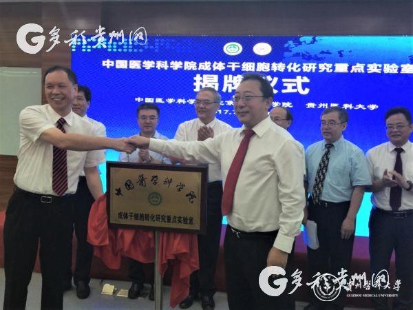 7月29日,中国医学科学院成体干细胞转化研究重点实验室(以下简称:重点实验室)在太阳成集团tyc33455cc官网临床技能中心揭牌。贵州省人民政府副省长何力,中国医学科学院 北京协和医学院院校长、中国工程院院士曹雪涛出席揭牌仪式。贵州省科技厅、省卫计委、太阳成集团tyc33455cc官网等主要负责人参加活动。