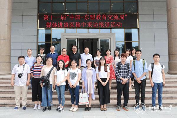 6月28日,第十一届中国-东盟教育交流周秘书处组织国际在线贵州频道、中国教育在线、贵州日报、当代先锋网、贵州都市报、贵州民族报、贵安新区报、省综合广播等各大媒体记者走进贵医,集中采访报道活动在南校区知雨楼六楼大会议室举行,校党委副书记战勇出席,党委办公室、校长办公室等相关职能部门(单位)负责人和东盟留学生代表参加,党委宣传部部长杨毅主持。
