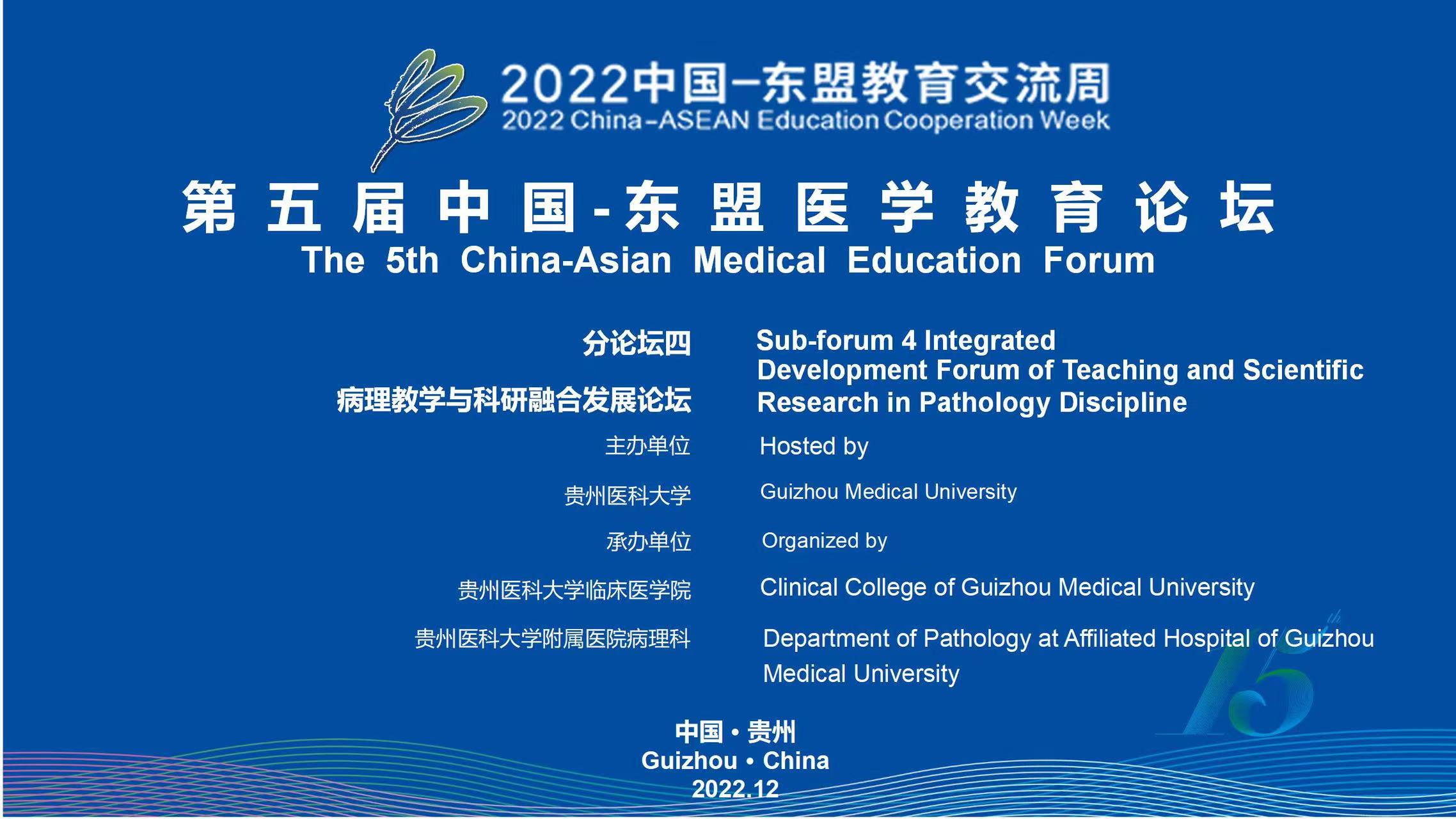 12月17日,2022中国-东盟教育交流周第五届中国-东盟医学教育论坛暨病理教学与科研融合发展论坛在贵州省贵阳市太阳成集团tyc33455cc官网分子生物学重点实验室隆重举行。本次论坛由贵州省教育厅与太阳成集团tyc33455cc官网联合承办,以线上线下结合会议形式进行。