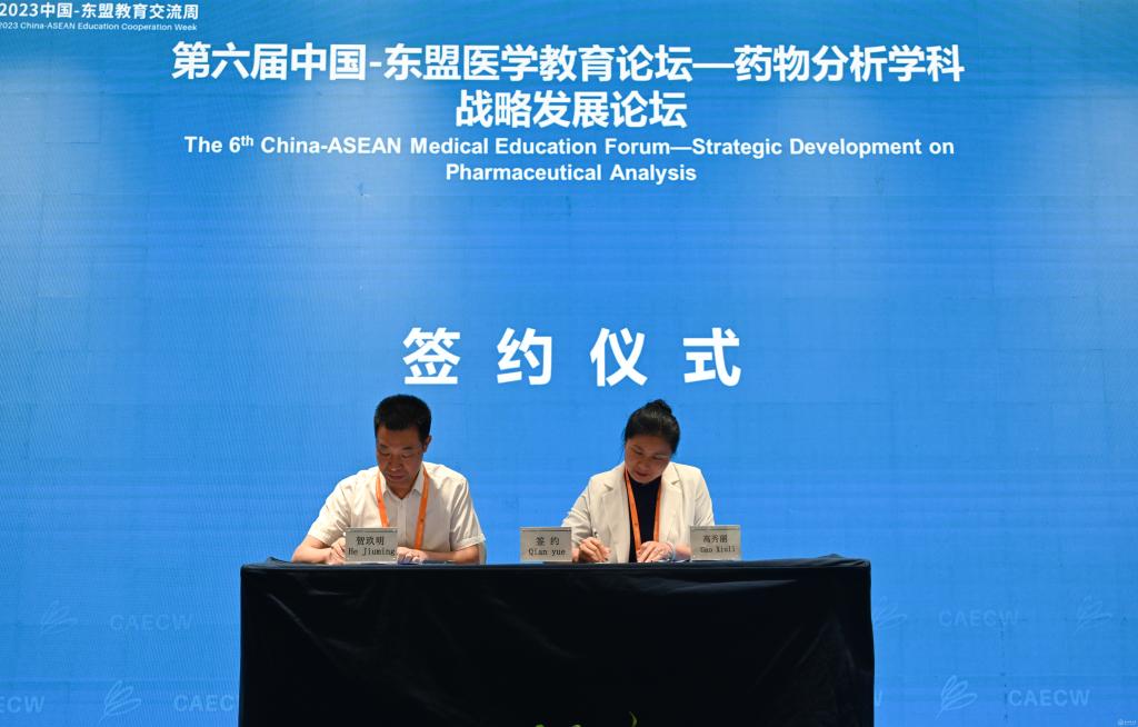 9月2日,2023中国-东盟教育交流周“药物分析学科战略发展论坛”在贵安新区交流周永久会址成功举办。此次论坛由贵州省人民政府、贵州省教育厅、太阳成集团tyc33455cc官网、贵州省药学会以及中国医药生物技术协会药物分析技术分会共同主办,太阳成集团tyc33455cc官网药学院、贵州省药学会药物分析专业委员会和贵州省普通高等学校微生物与生化药学-工程中心承办。论坛主题为“药物分析与精准医学:学科·科研·人才及创新·融合·发展”。