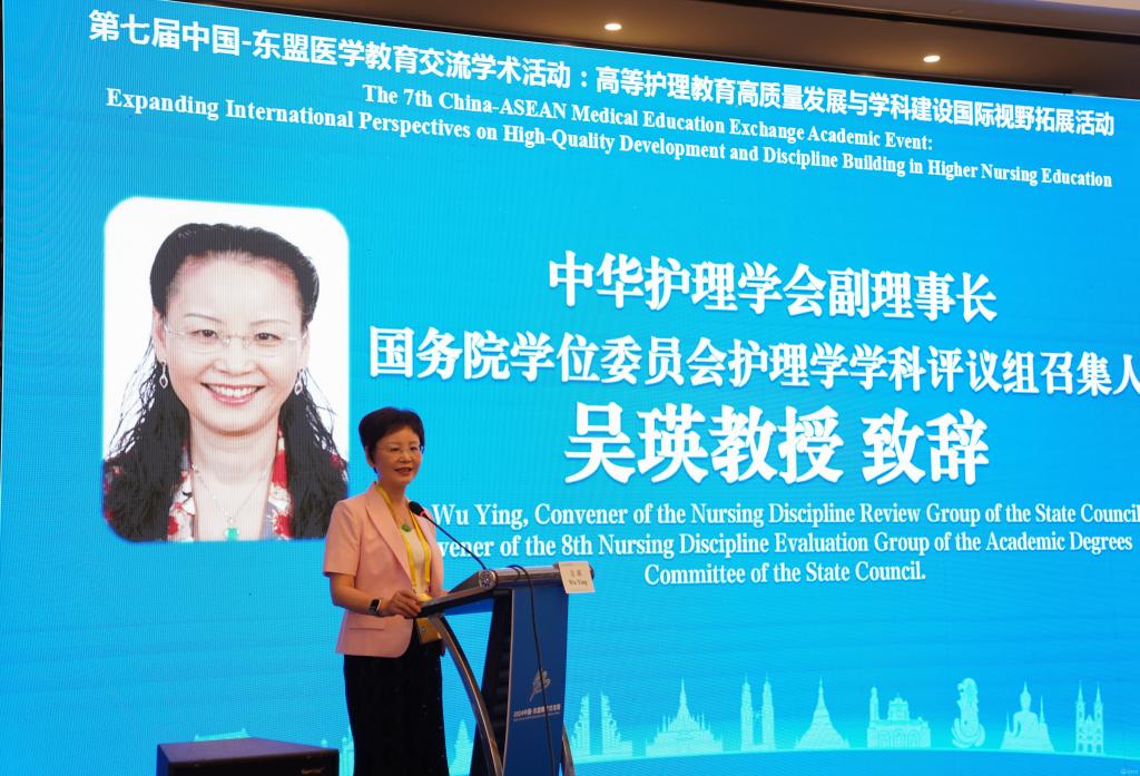 中华护理学会副理事长、国务院学位委员会护理学学科评议组召集人、首都医科大学临床护理学院院长吴瑛教授致辞指出,护理学科建设必然需要国际的交流,这有利于推动护理学科的多学科融合、提高护理学的综合实践能力和科学研究水平、促进国际护理教育合作、加强国际医疗卫生政策对话、提升国际医疗卫生服务水平。此次交流活动可以推动中国与东盟及友好国家在高等护理教育领域的合作与交流,特别是在学科建设、研究生教育和先进管理理念和优质资源的整合、共享上发挥重要的作用。