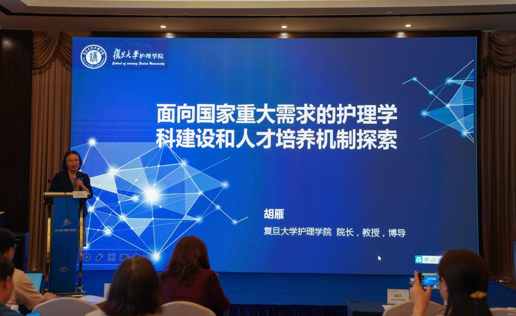 复旦大学护理学院院长胡雁教授从“健康中国”战略下护理学科的发展机遇、多学科交叉融合促进护理的创新发展及复旦大学护理人才培养机制探索实例等方面作了“面向国家重大需求的护理学科建设和人才培育机制探索”的分享,对未来护理学科建设的发展及实践提供了指导。