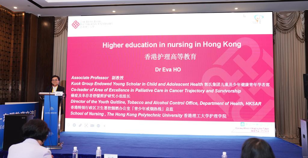 香港理工大学博士生导师、护理学院何家欣副教授围绕“香港护理高等教育”进行了主题分享,为与会者介绍了香港护理学士、硕士、博士学历层次教育的培养模式,帮助大家细致了解香港高等护理教育的基本情况。