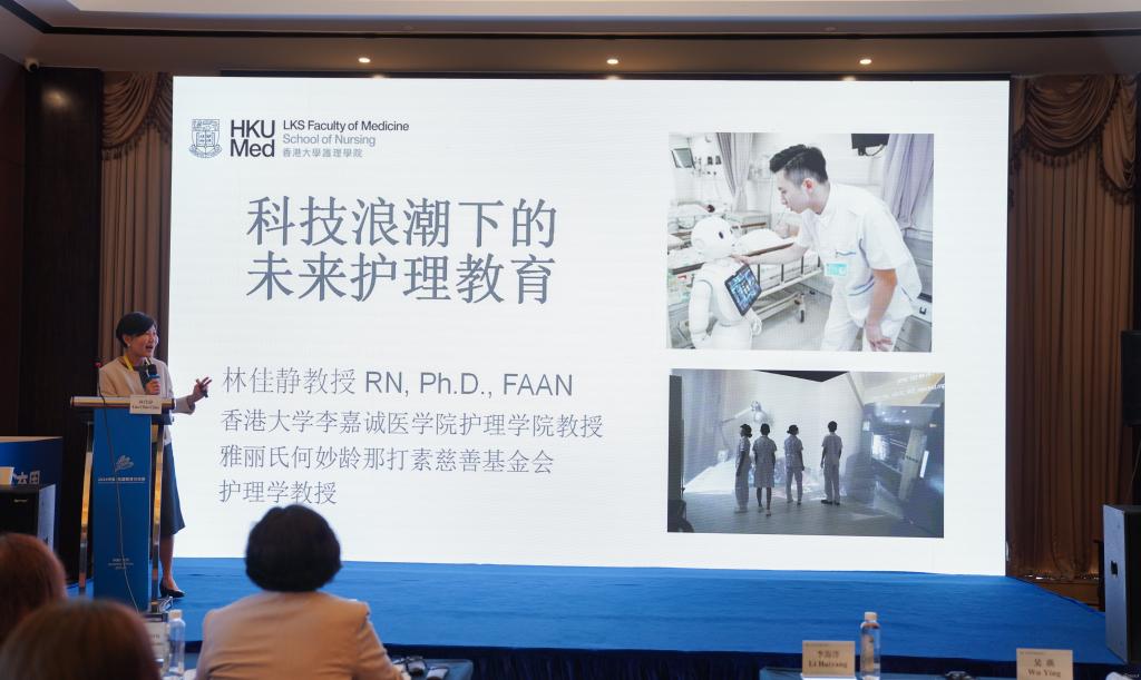 香港大学护理学院院长林佳静教授题为“科技浪潮下的未来护理教育”的分享引发了大家对新的科学技术如何为护理所用的思考,她以香港大学护理教育教学过程中虚拟现实(VR)、人工智能(AI)、模拟学习教学手段和方法的应用为例,讲述了科技与人文在护理教育中的重要性和发展趋势。