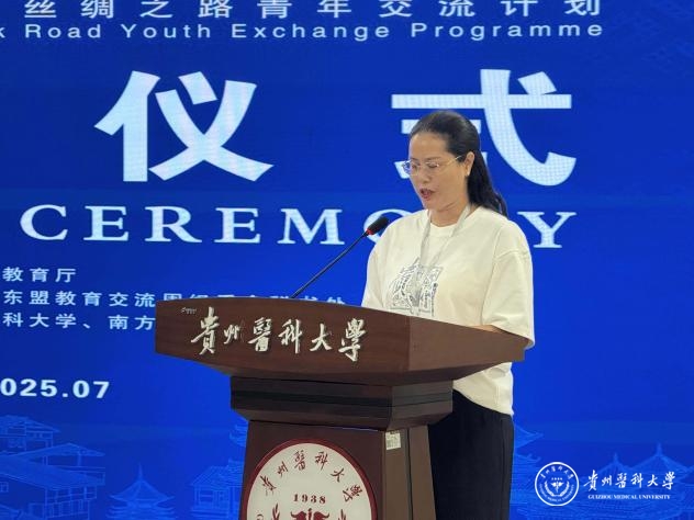 南方医科大学国际教育学院院长陈君作为协同主办方代表致辞。她指出,夏令营已成为中外青年文化交融的优质载体,希望青年学子以贵州为窗口,通过实地探访感知真实立体的中国,成为文化交流的青春使者。