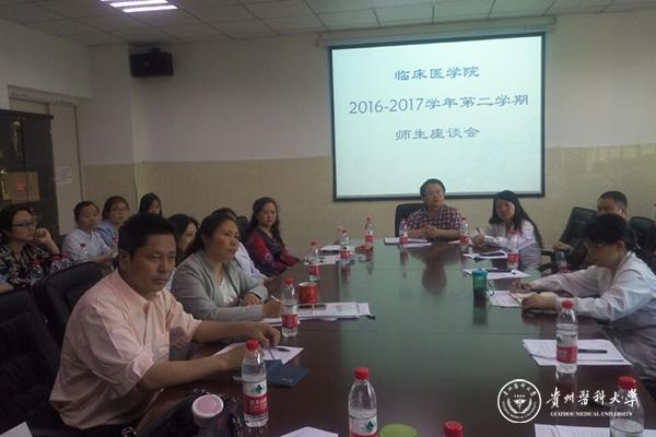 为加强师生联系,搭建老师与同学沟通的良好平台,做到早交流、早反馈,促学习、促教学,临床医学院于4月20日在北校区召开师生座谈会。学校附属医院副院长、临床医学院常务副院长孙发,临床医学院副书记杨婕,副院长艾戎,相关教学教研室主任和教师,2013、2014级辅导员及2013、2014级的学生代表参会,会议由临床医学院党委书记周红主持。