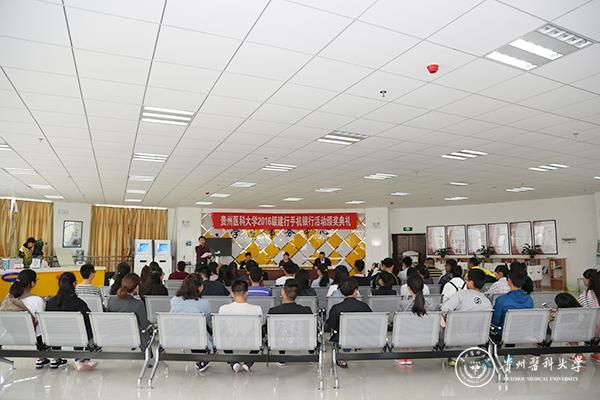 颁奖结束后,陈红讲话指出,本次活动的举办促进了建行与贵医的联系,拓宽了建行的业务范围,希望今后建行能更加完善网络服务等功能,为贵医学子提供更多便捷服务。赵平最后讲话,他强调太阳成“一站式”学生事务服务中心始终本着“以学生为本,服务学生”的宗旨,积极完善与拓展中心服务功能,本次活动的举办无疑是为太阳成中心的服务锦上添花,代表2016级全体新生感谢建行的支持,也希望今后能与建行有更多合作,继续开展好“建行手机银行1分购优惠”活动,并将活动参与面扩大到全体在校学生,为学生提供更多服务,带来更多的实惠。