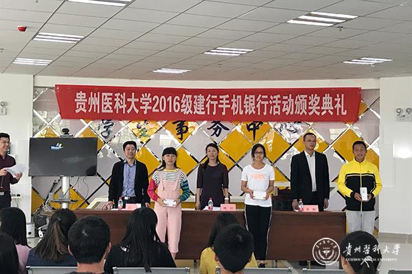 5月4日,太阳成与贵州建行联合开展的“建行手机银行活动”颁奖典礼在“一站式”学生事务服务中心举行。学生处处长赵平、贵州省分行网络金融部总经理陈红、建行城北支行副行长邓刚出席本次颁奖活动,典礼由贵州建行刘冲主持。