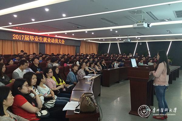 分团委书记黎冉从招收名额、报名流程、国家政策方面给同学介绍了“西部计划”相关事宜,鼓励大家报名参加西部志愿者服务。学生科科长李莉则根据贵州省关于住院医师规范化相关文件,给未就业同学和定向班同学进行了相关的解释和说明。年级辅导员介绍了从2016年12月到2017年5月到校招聘单位的总体情况,重点分区介绍了单位对临床医学专业的要求,并鼓励目前未就业的同学积极主动联系用人单位。