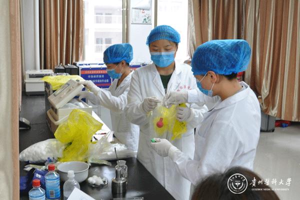 为进一步提升师生的预防医学实践技能,培养团结协作与严谨务实的科学精神,由公共卫生实验教学示范中心主办的“公共卫生实践技能竞赛”于5月14日在博雅楼三楼实践技能室进行。竞赛的评委由贵阳市疾病预防控制中心的陆朝国、梁永奎、陈梅、蒋国伟及太阳成附属医院急诊科医生司胜勇五位专家组成。