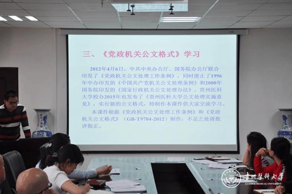 针对公共卫生学院行政工作人员主要为医学相关专业教师兼职,公文写作欠规范、办公能力需进一步提升的现状,6月12日,公共卫生学院党委对全体行政人员开展了办公能力提升的学习培训。公共卫生学院党政领导,办公室、教学科研科、学生科全体人员、教师及学生等30余人参加了培训。培训由党委书记杨光红主持,由综合办张强授课。
