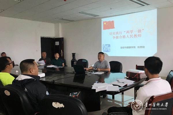 6月12日,运动与健康学院在体育馆三楼会议室召开“两学一做”制度化常态化专题学习会,全院教职员工参会。会议由学院党委书记姚思勤主持。