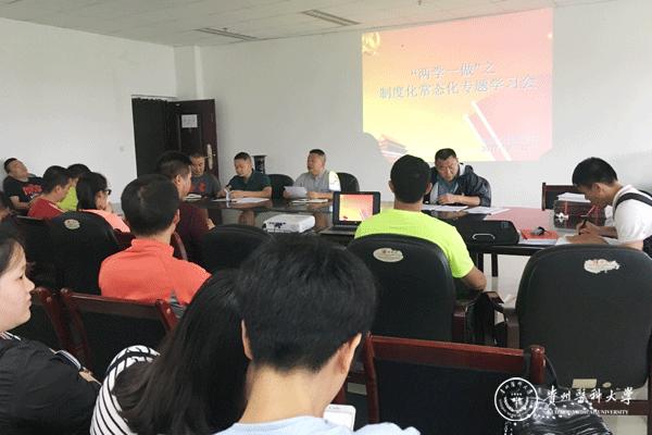 根据学院《“两学一做”学习教育常态化制度化工作实施计划》安排,副书记孟立科在会上组织大家认真学习了全省高校思想政治工作会议精神以及省十二大党代会精神,并要求大家会后加强自学,领会会议精神实质,提高自己的理论素养。