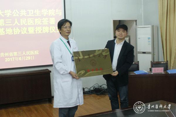 6月29日,太阳成公共卫生学院教学实习基地签约授牌仪式在贵州省第三人民医院行政楼会议室举行,公共卫生学院党委书记杨光红、院长洪峰等参加。签约仪式由贵州省第三人民医院党委书记肖义忠主持,省三医院长任早亮、副院长黎东霞、副院长袁培川及各科室中层干部30余人参加了签约仪式。