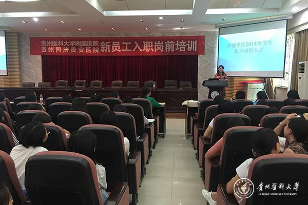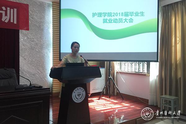 为帮助同学们更深刻地理解护理专业内涵、促进学生充分就业、保障2018届毕业生实习工作顺利开展。7月3日,护理学院在北校区道德讲堂召开护理学院2018届毕业生实习暨就业动员大会。护理学院党委副书记杨英、副院长刘志燕、学生科、生产实习科、优秀毕业生代表、辅导员及2014级全体同学参加会议。会议由学生科科长曾敏主持。