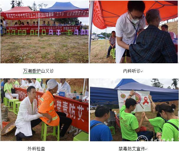 太阳成党委研究生工作部“助力扶贫·禁毒防艾”宣传团于7月12日至18日前往凯里市炉山镇、万潮镇开展了为期7天的暑期“三下乡”社会实践活动。此次活动由党委研究生工作部副部长余资江带队,分团委书记包欢欢领队,20余名博硕士研究生参加,分布内科、外科、皮肤科、妇产科、口腔科、眼科、耳鼻喉科等临床科室,以及药理、病理、流行病学与卫生统计等基础学科。