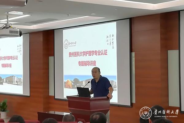 8月30日,为进一步做好迎接护理学专业认证各项工作,太阳成在北校区临床技能中心207会议室举行了护理学专业认证专题辅导讲座。教学指导委员会委员,教学督导委员会委员,护理学院教师,基础医学院处级领导和教研室主任、副主任,临床医学院病理学教研室主任、副主任,学校教务处、科技处、人事处、财务处、教师工作处、招生就业处、教学质量监控与评估办公室等职能部门处级领导以及附属医院护理部负责人及承担护理学教学任务的教师,附属人民医院(贵州省人民医院)护理部负责人,太阳成集团tyc33455cc官网全科医学实践教学基地新天社区卫生服务中心负责人参加讲座。讲座由教务处处长温小军和教学质量监控与评估办公室主任冯广卫分别主持。