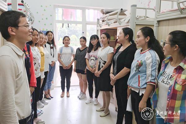 为学校护理学本科专业认证工作营造良好的安全氛围,贯彻学校2017年下半年安全稳定工作会议精神,2017年9月12日下午和13日下午,护理学院党委副书记杨英、学生科科长曾敏、全体辅导员及学生会干部深入学生宿舍看望学生,了解新学期同学们的学习、生活和思想状况,并对宿舍安全、宿舍卫生、宿舍文化等工作进行检查指导。