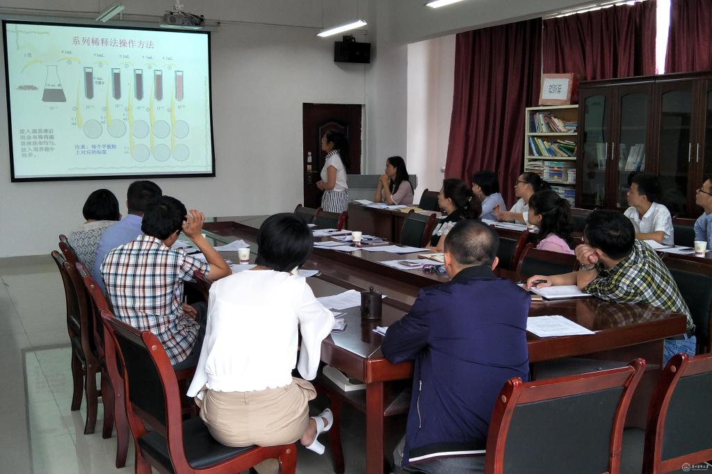 为切实提高课堂教学水平,促进青年教师更快更好地走上讲台。9月13日,生物与工程学院在南校区厚德楼5楼会议室举行了青年教师新课试讲活动。化学生物学教研室2015年引进博士欧沙、2016年引进博士欧阳燕,生物医学工程教研室周厚明,生物技术教研室刘利利、曾丽娜共5名教师对各自所承担的课程进行了15分钟的试讲。试讲题目分别为:生物无机化学——金属—有机框架材料简介及其应用、冷冻电镜三维重构解析蛋白质结构、传感器基础知识及常见传感器原理、《发酵工程》实验——发酵菌种的自然选育、《植物细胞工程》实验——培养材料的灭菌与接种(培养绿豆无菌苗)。