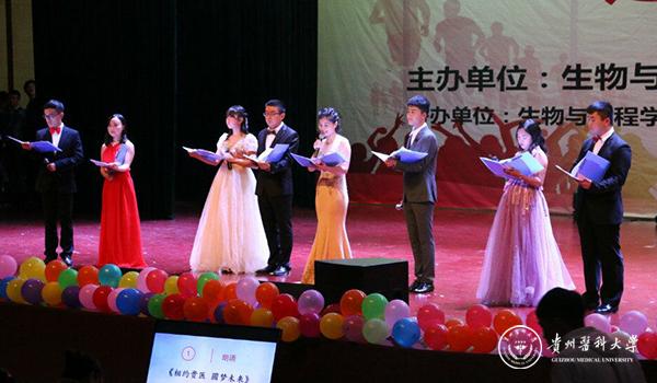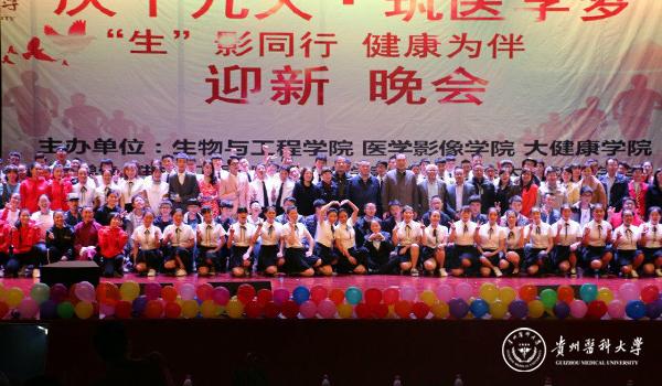 晚会在三院师生带来的《相约贵医·圆梦未来》朗诵节目中拉开帷幕。师生代表通过饱含深情的表演,表达了对新贵医人传承贵医精神,勇攀高峰的殷切希望。晚会节目内容丰富多彩,歌声婉转动听、舞蹈轻盈优美、古筝婉转悠扬、小品笑点十足,向观众展现了贵医人朝气蓬勃、充满活力的青春力量,博得在场嘉宾的阵阵掌声。而间或穿插在整场晚会的互动环节,通过抽奖、幸运问答等形式,把整场气氛推向了高潮。最后,晚会在欢快的《贵医欢迎你》大合唱中完美落幕。莅临现场的嘉宾与晚会的演员及工作人员合影留念。
