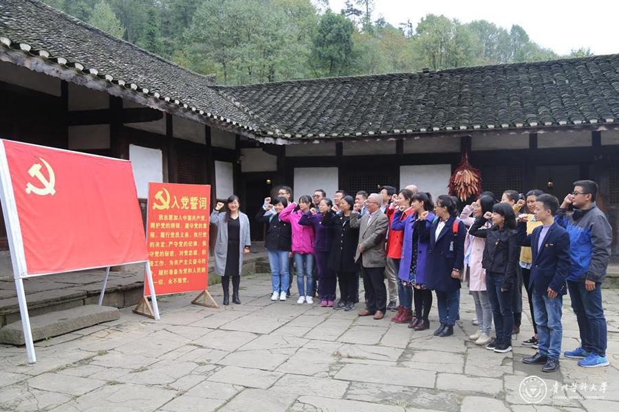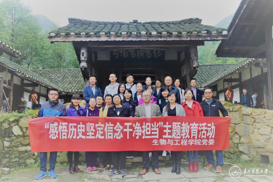 为扎实推进“两学一做”学习教育常态化制度化,进一步加强党风廉政建设, 10月21日,生物与工程学院党委组织全院党员干部20余人赴遵义市播州区苟坝会议会址开展“感悟历史 坚定信念 干净担当”主题教育活动。生物与工程学院党委书记封韬带领全体党员重温入党誓词。