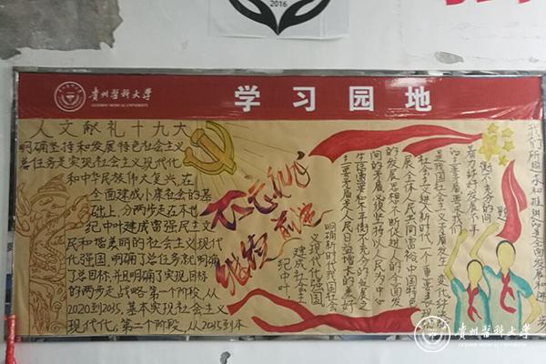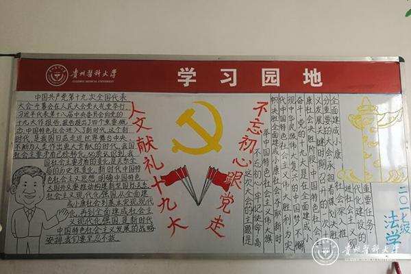 为积极响应十九大会议精神,让同学更加深入了解十九大内容,领会其内涵,医学人文学院于11月20日在南校区开展了以“手绘初心”为主题的板报评比活动,最终2016级法学获得本次活动的第一名,2017级法学和2017级应用心理学分别获得本次活动的第二名和第三名。