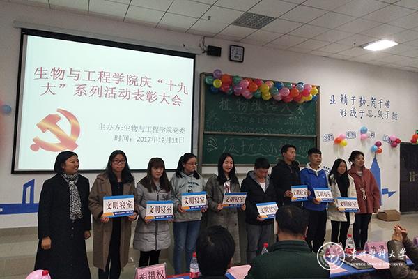 大会在庄严的国歌中开始,封韬宣读了《生物与工程学院关于表彰学习宣传贯彻落实党的十九大精神系列活动先进集体、优秀个人的决定》,并对获得表彰的先进集体及优秀个人表示祝贺。