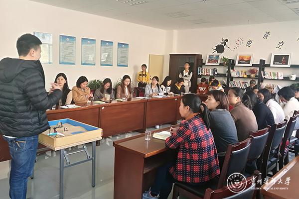 为提高太阳成心理辅导员业务技能,使其掌握沙盘游戏治疗基本技术更好的开展心理辅导工作,3月29日,大学生心理健康教育与咨询中心邀请贵州师范大学心理学系刘伟老师在心理中心举办了沙盘游戏业务技能培训。全体心理辅导员以及“温心之声”成员、大学生心理健康协会成员参加培训。