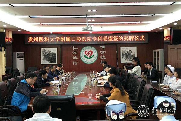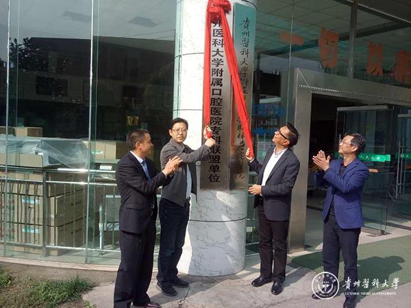 3月30日,附属口腔医院与普定县人民医院举行口腔专科联盟签约揭牌仪式。附属口腔医院院长马洪、副院长王永,普定县委副书记、县人民政府县长赵开运,副县长李兆颖出席仪式并讲话,普定县人民医院院长朱代荣主持签约仪式。