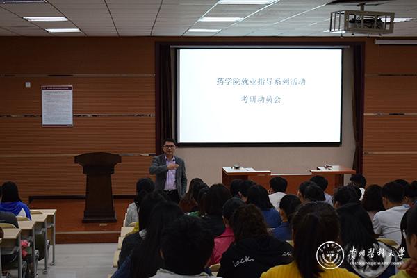 4月4日,药学院在格物楼5101教室开展就业指导系列活动之考研动员会。动员会以提升毕业生学历层次为目的,切实做好2019届毕业生就业工作。药学院院长沈祥春、党委副书记廖兴江、辅导员及2015级全体同学参会。