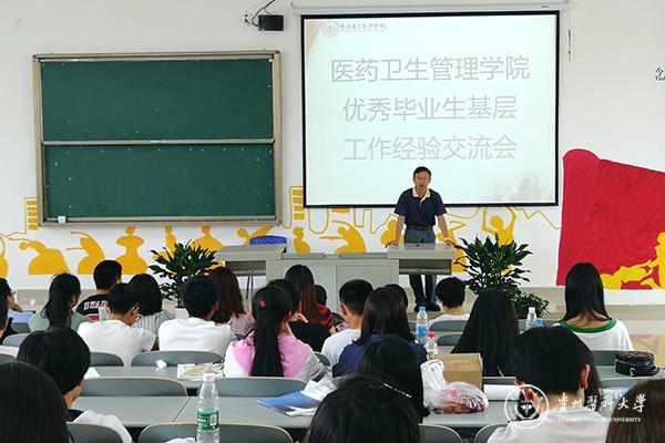 5月15日,医药卫生管理学院在南校区7605教室举行首届基层工作毕业生返校经验交流会,学院党委书记钟良、党委副书记王倩及部分教研室老师、辅导员出席会议。邀请了2016届药学营销毕业生王贵旭同学(2016年参加公务员考试进入大方县市场监督管理局工作,2018年3月选派到大方县理化乡营盘村挂任第一书记) 和2017届卫生事业管理毕业生张海雷同学(2017年参加安顺市事业单位考试进入西秀区疾病预防控制中心工作,2018年3月选派到西秀区东关办事处石厂村挂任第一书记)作交流,学院全体在校学生参加会议。