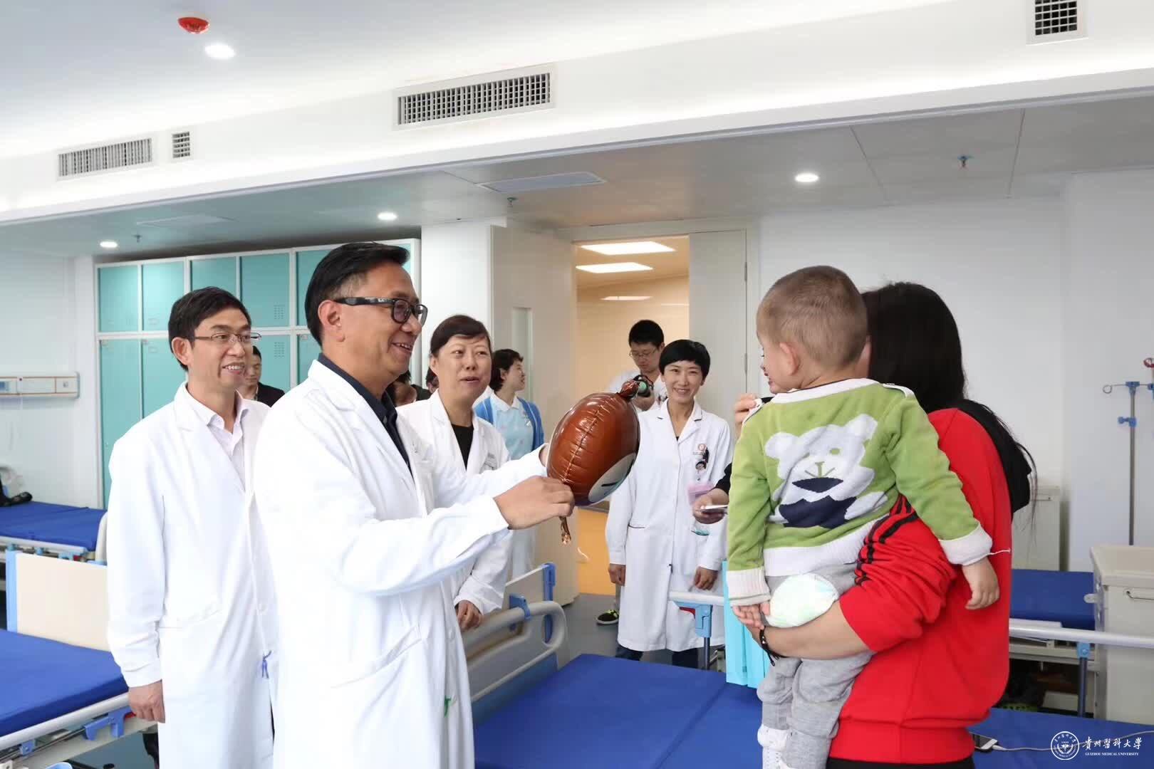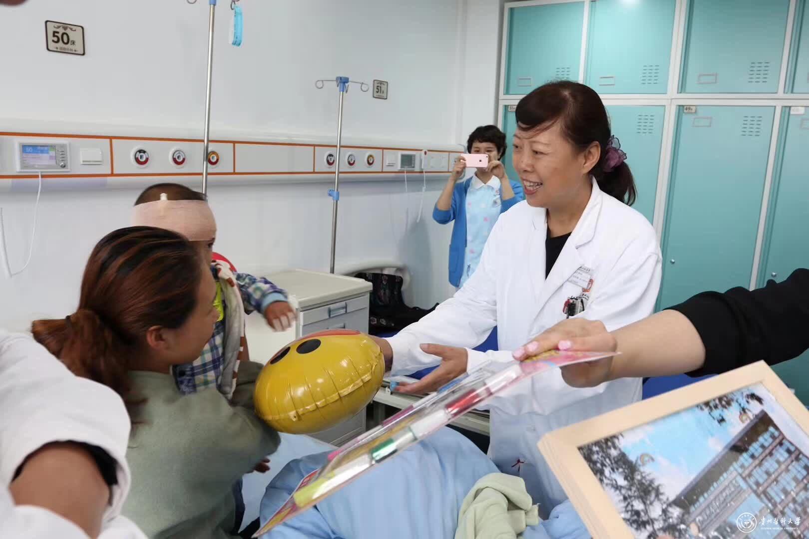 6月1日,太阳成集团tyc33455cc官网附属口腔医院院长马洪,党委书记张军梅,副院长唐正龙代表医院前往颌面外科病房,为唇腭裂患儿送去关心和祝福,祝愿小朋友们身体健康,快乐成长。