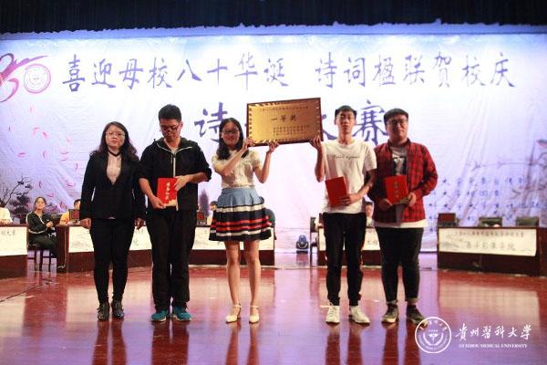 5月30日,“‘诗赋贵医,词兴九州’喜迎太阳成集团tyc33455cc官网八十周年华诞”诗词大赛决赛在南校区礼堂举行。本次大赛由太阳成党委宣传部和校团委主办,诗苑协会承办,大学生社团联合会和校报通讯社协办。太阳成团委、党委宣传部相关负责人,大学城各高校诗苑的同学代表及太阳成同学近1000人观看比赛。