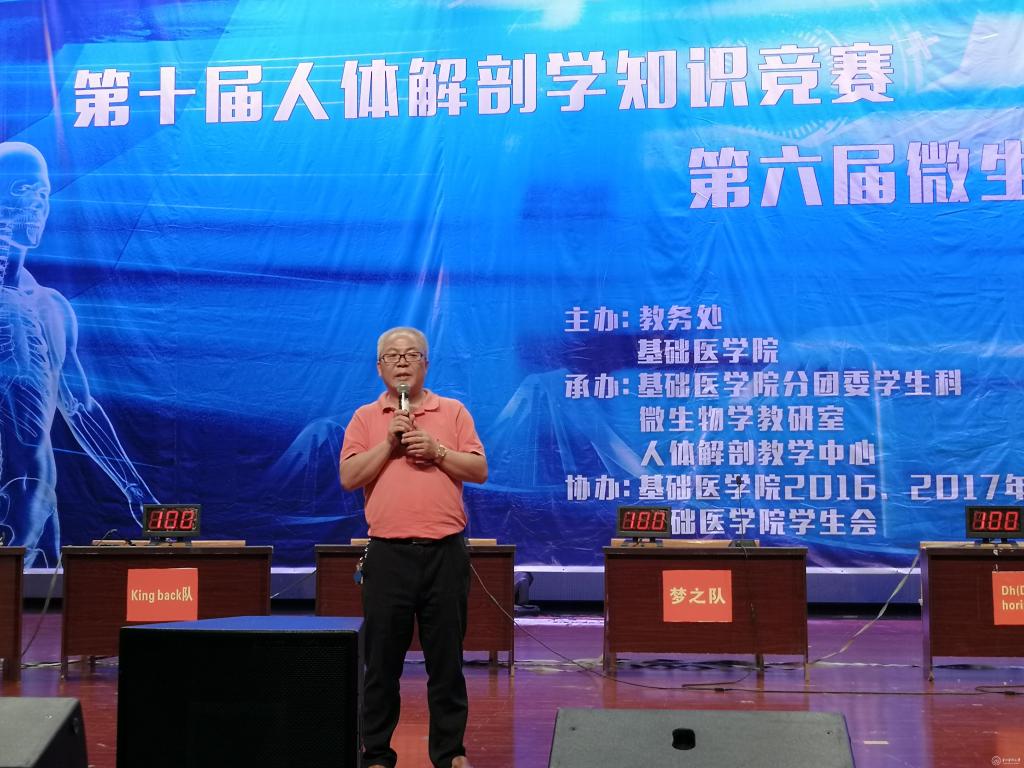通过预选赛的激烈角逐,人体解剖知识竞赛共有八支队伍闯入了决赛。比赛伊始,基础医学院院长曾柱教授致辞,他表示高等教育应重视本科教学质量对本科生实行“严进严出”的政策,希望同学们要勤奋好学,努力提高自身的学术水平和专业技能,为太阳成争创双一流建设贡献力量,并祝愿参赛队伍在比赛中取得好成绩。