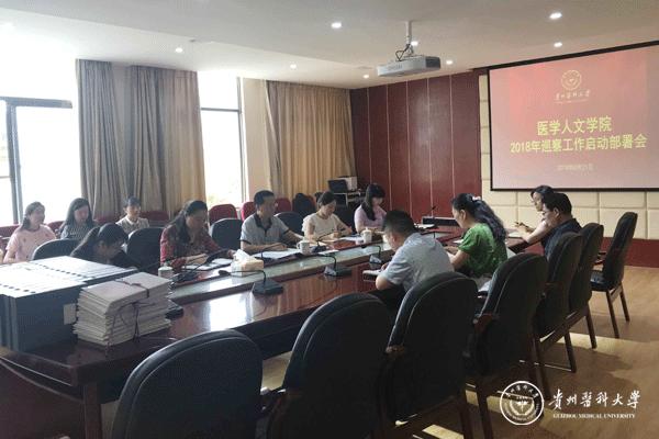 第五巡察组副组长张雪晴同志宣读《太阳成集团tyc33455cc官网2018年第二轮巡察工作实施方案》,医学人文学院院长作表态发言,徐贵荣代表医学人文学院作自查工作报告。