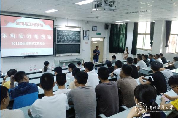 为做好2019届本科毕业生实习前的思想动员工作,加强实习生对实习工作安排和实习任务的了解,生物与工程学院生物医学工程专业2019届本科毕业生实习动员会于9月3日在北校区综合楼3101教室召开。参加本次实习动员会的有生物与工程学院副院长罗松、生物医学工程教研室主任罗军、实训中心主任尚小丽、教师代表杨帆、刘磊、缪月红以及2015级生物医学工程专业全体同学。