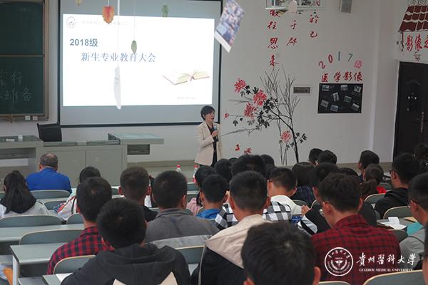 9月18日,医学影像学院2018级新生专业教育大会在南校区7304教室召开。学院党委书记李雪梅、院长周石、副院长李兴、党委副书记姚琨、各教研室教师及2018级全体学生参加会议。