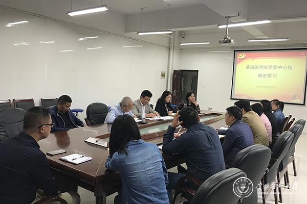 9月28日,基础医学院党委在W201会议室召开中心组理论学习会议,专题学习《中国共产党纪律处分条例》并对相关工作进行部署。基础医学院党政领导、党支部书记、教研室(实验室)负责人及全体辅导员参加会议,会议由党委书记徐国强主持。