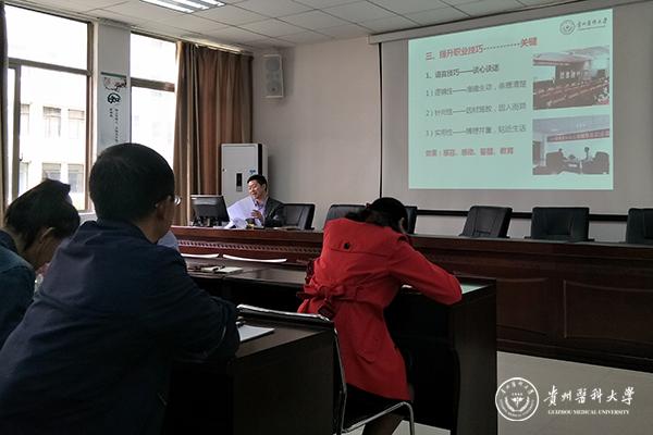 为加强辅导员队伍专业化职业化建设,9月29日至11月1日,学工部分别在博雅楼二楼学术报告厅、一教学楼电教中心录播室、颂雅楼一楼会议室对全体辅导员进行了培训。此次培训由学工处处长赵平、学工处副处长李宗梅、学工处副处长肖绚以及具有丰富学生管理经验的资深专家贵州商学院学生处处长田歆、贵州师范大学学生处处长万平、贵州理工学院学生处处长徐元敏、贵州财经大学学生处周晶、贵州师范大学求是学院党委书记尹毅作专题讲座培训。