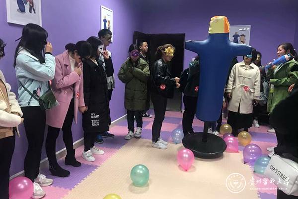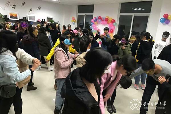 活动于下午三点整在悯农堂拉开帷幕,心协精心策划了三个小游戏,分别是爱的抱抱,分组踩气球,我是你的眼。游戏的欢声笑语吸引越来越多的同学参与本次活动。更有双十一告白墙,让同学们写下心中所念之人。晚上七点,温心之声所主办的假面舞会开始,参加晚会的同学人手一个面具。现场,大家跳交谊舞,抖音热舞。随后带领参加活动的同学参观了大学生心理健康教育宣泄室、沙盘室等功能室,并进行了讲解。